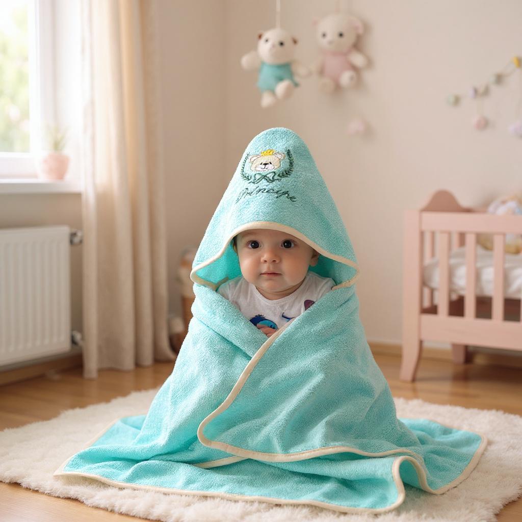 Toalha de Banho Bebê Bordada com Capuz Dupla Face Menino Menina